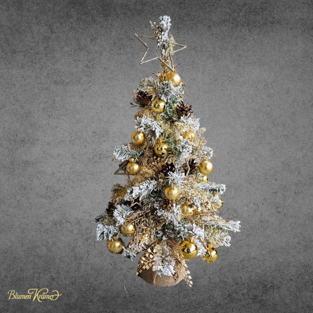 Wish a loved one a magical Advent season with our snowy mini Christmas tree. This decorative artificial tree spreads joy and coziness, creating a festive atmosphere throughout the Christmas season. With integrated lights and available in two sizes, either for decorating yourself or already decorated in red or gold, it's the perfect gift or a charming decoration for home or office.