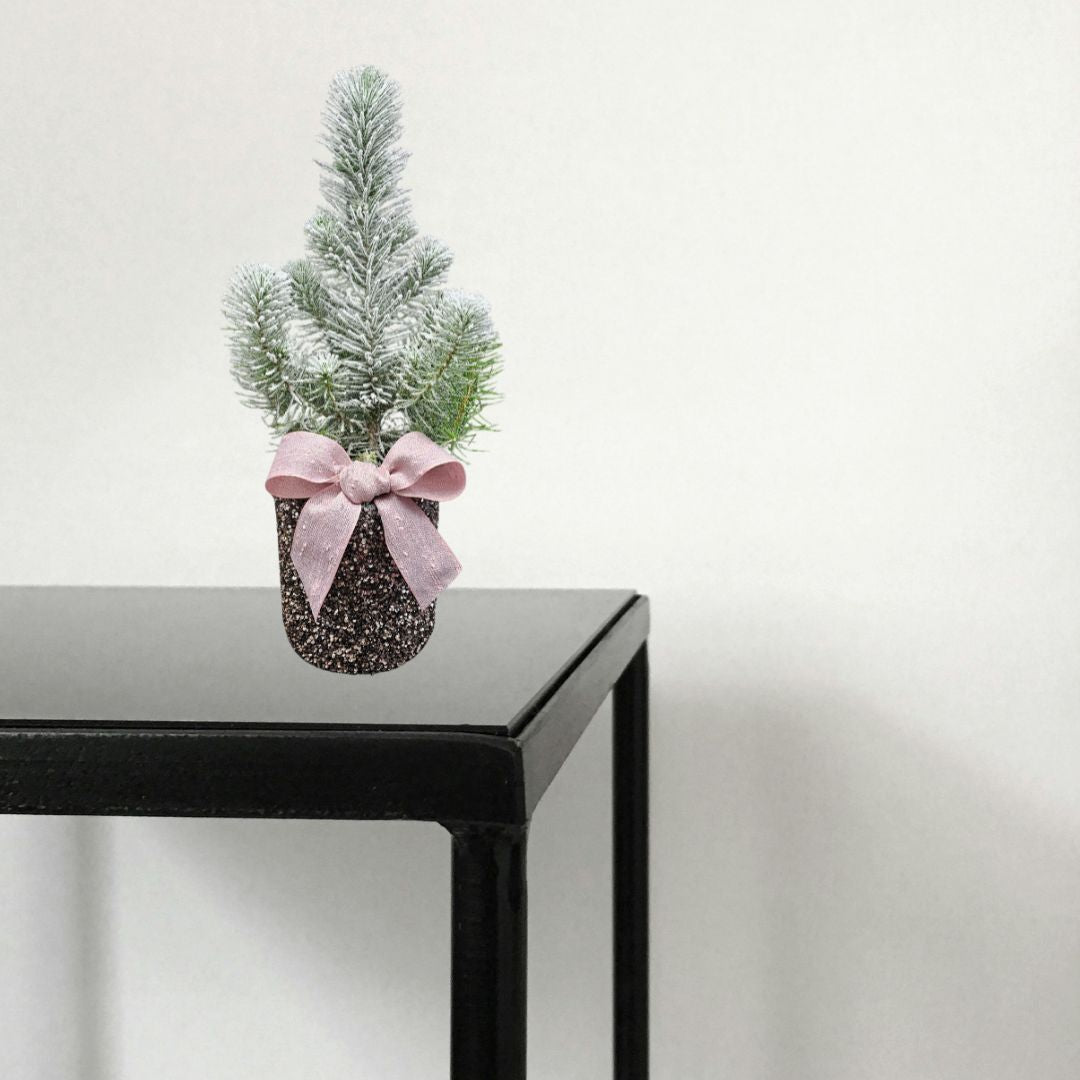 Our Pinus Pinea Snowy, with its delicate snow effect in a glittering pot adorned with a bow, is a festive eye-catcher for your home. This stylish little winter decoration brings a warm holiday atmosphere to any room. Its compact size fits perfectly on a table, windowsill, or in a reception area and is ideal if you're looking for a thoughtful gift with fast delivery. Give this decorative little fir tree with its snowy appearance as a gift. Our Pinus Pinea is freshly arranged and ready for immediate delivery for anyone wanting to buy an elegant winter plant online. Pinus Pinea Snowy is available in two variations.