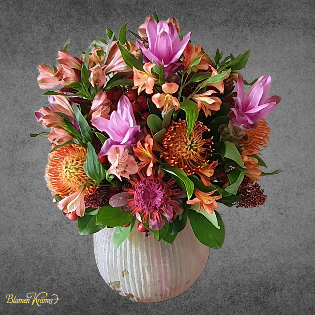 Der "Herbstbote" ist ein saisonaler Blumenstrauss, der frischen Charme in Ihr Zuhause bringt. Lassen Sie sich von den warmen Farben verzaubern und bringen Sie ein Stück Natur in Ihre vier Wände. Perfekt für die Herbstzeit und als Geschenk für Ihre Liebsten.