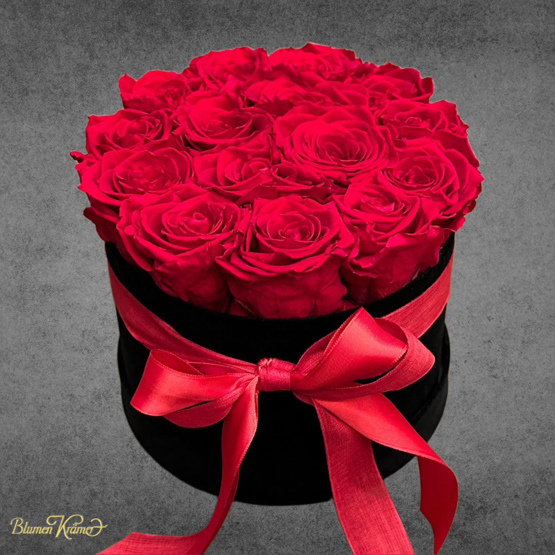 Erleben Sie die Schönheit und Eleganz von stabilisierten roten Rosen in einer hochwertigen Samtbox. Erhältlich in 4 verschiedenen Grössen, eignet sich diese Rosenbox perfekt als besonderes Geschenk oder als dekoratives Highlight in Ihrem Zuhause. Verzaubern Sie mit zeitloser, langanhaltender Schönheit und lassen Sie sich von der Qualität dieser Rosen verführen.